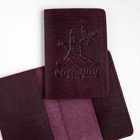 Обложка из натуральной кожи с мягкой и бархатистой поверхностью. Внутри три кармана для карт. Лазерная гравировка.