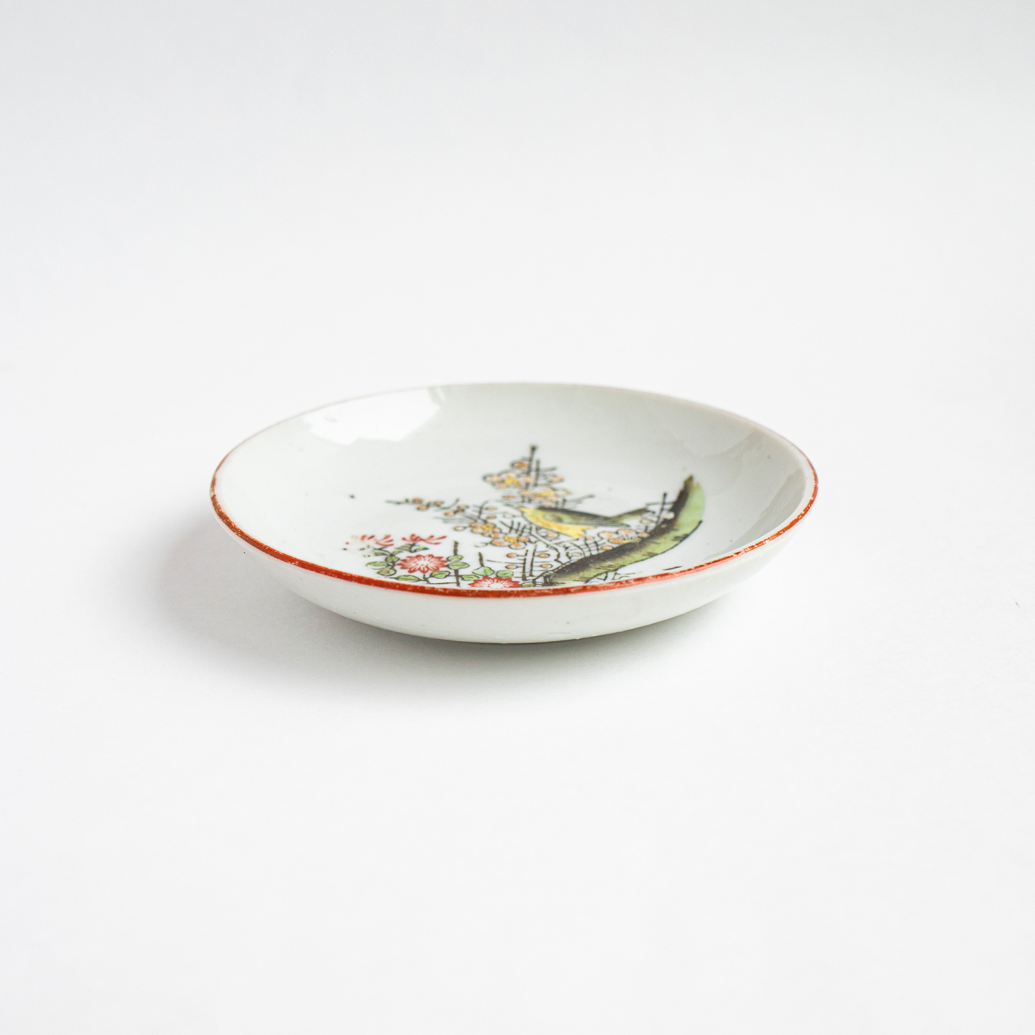 Старинная японская тарелка периода "Карафуто"(1905 - 1945 гг.) с птичкой. Предмет традиционной японской культуры. Фарфор. Найден на раскопках в Сахалинской области. Тарелочка имеет небольшие царапины и потертости - как воздействие времени, при этом абсолютно функциональна, может использоваться по назначению или быть объектом коллекционирования. Диаметр 11 см.