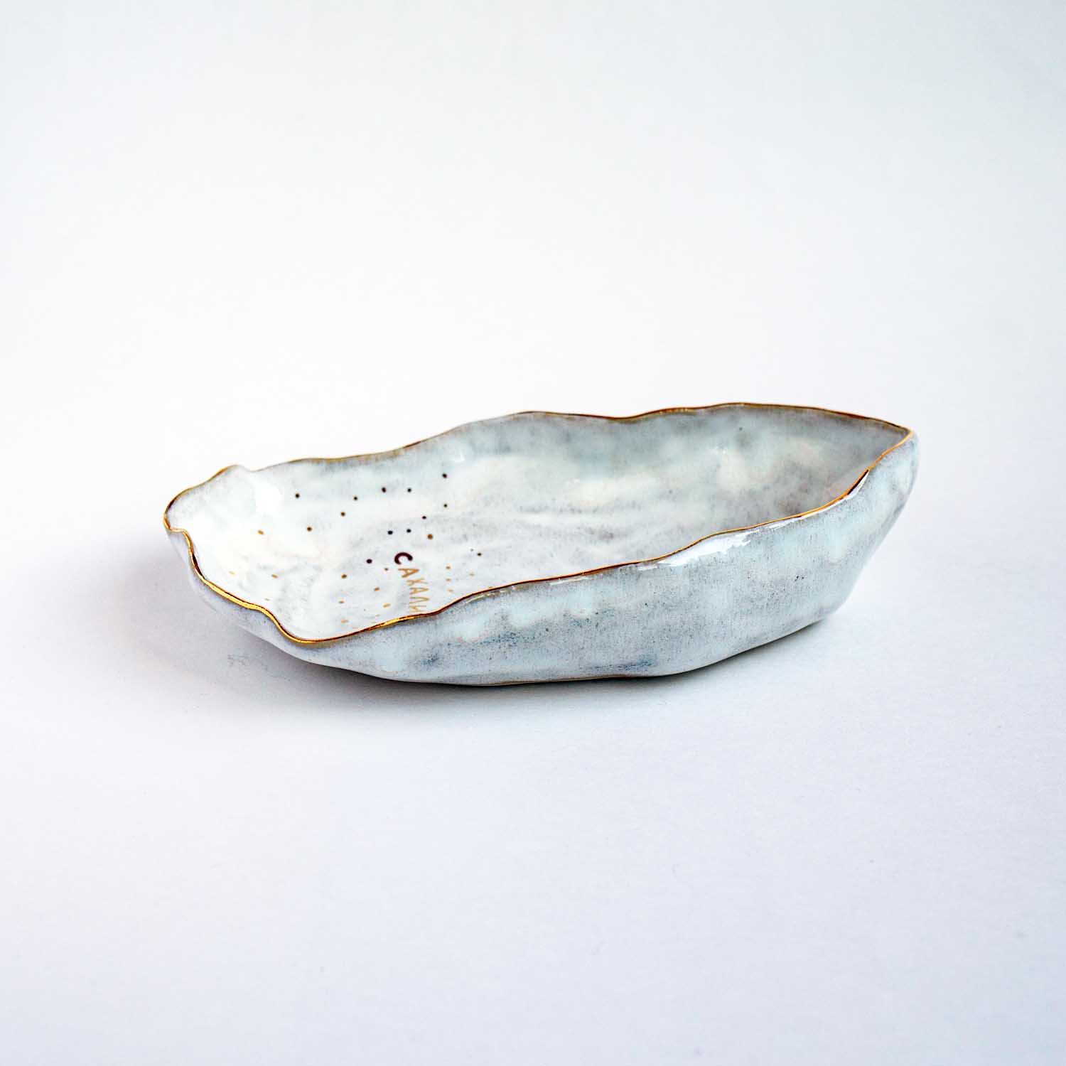 Керамическая пиала ручной лепки в виде сахалинской устрицы. Цветные глазури,высокотемпературный обжиг, золочение. Размер 7,5х18 см. Можно мыть в посудомоечной машине на щадящем режиме. Ставить в микроволновую печь изделия с золотом нельзя. Керамика ручной работы может незначительно отличаться деталями, размерами и оттенками глазури. Сделано на Сахалине.