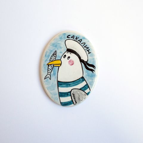 Магнит из керамики, ручная лепка, роспись глазурями, размер 4.5х6.5см. Сделано на Сахалине.