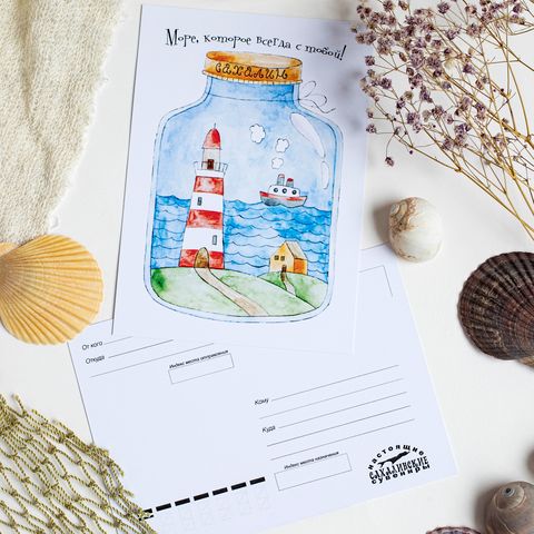 Почтовая открытка с акварельным авторским рисунком. Полноцветная печать.