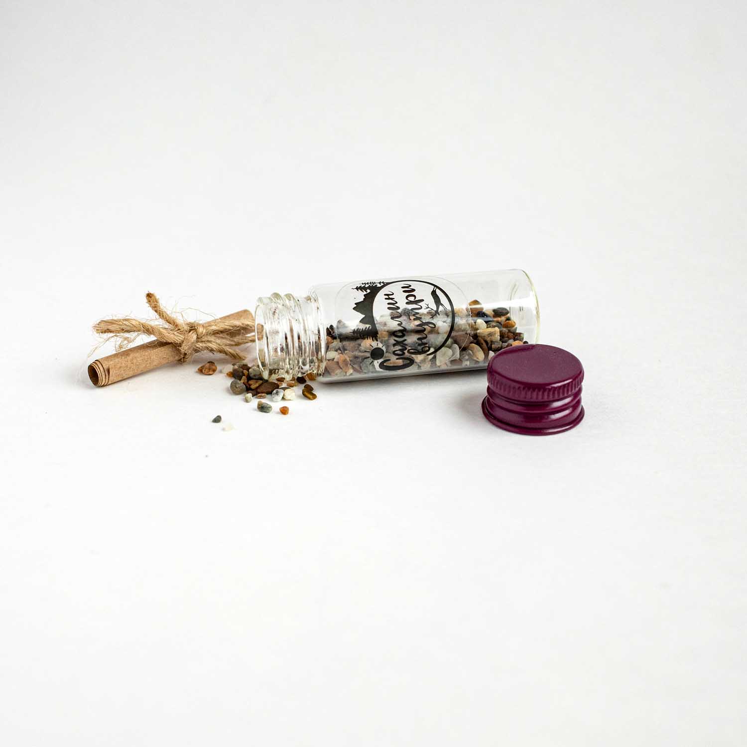 Бутылочка с морскими камешками и пожеланием. Маленький душевный презент или дополнение к большому подарку. Высота бутылочки 6 см.