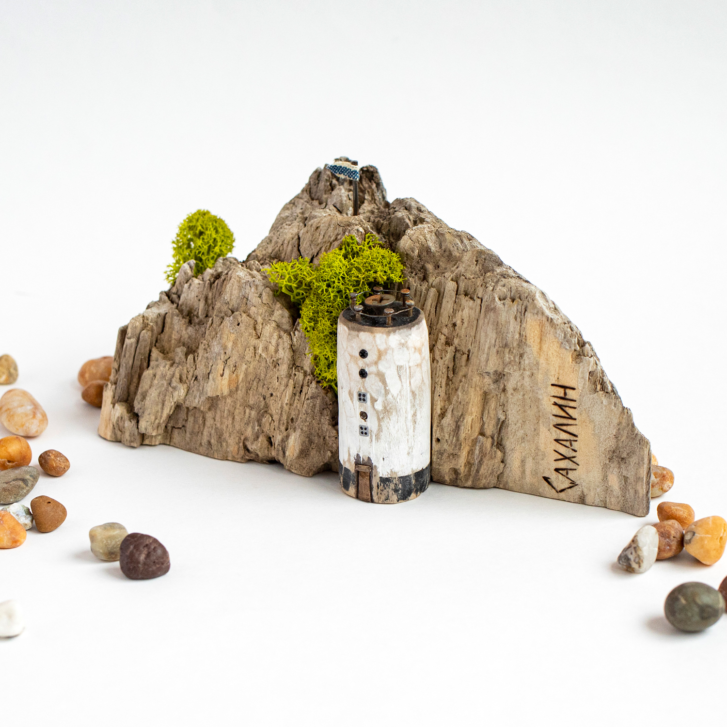 Композиция из морского дерева, собранного на побережье Охотского моря (роспись акрилом, старые гвоздики, саморезы). Ручная работа , сделано на Сахалине.Размер 16х8 см.