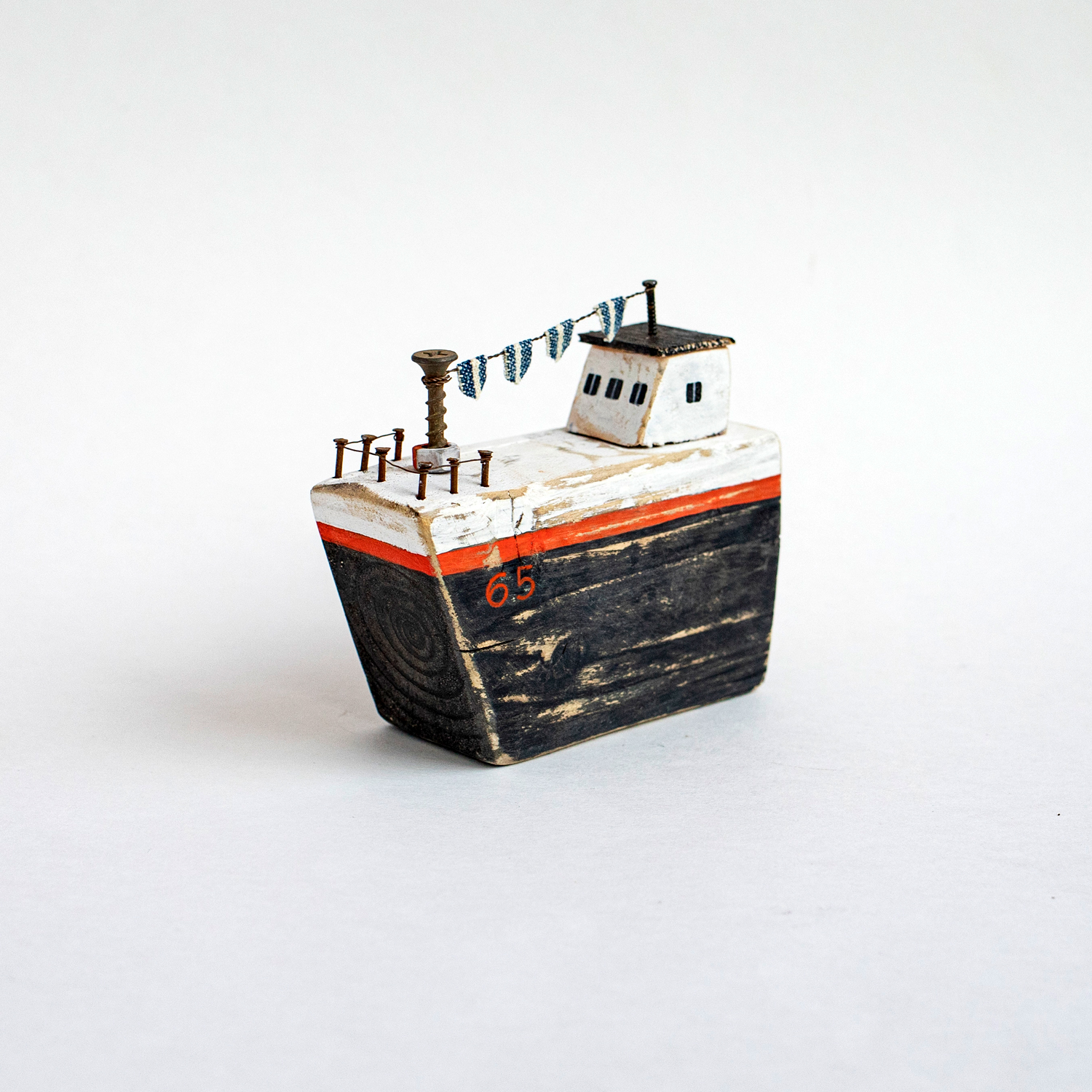 Композиция из морского дерева, собранного на побережье Охотского моря (роспись акрилом, старые гвоздики, саморезы, текстиль). Ручная работа, сделано на Сахалине. Размер 8х5 см.