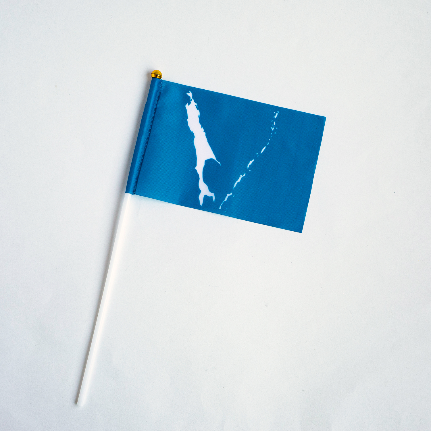 Маленький флаг Сахалинской области на флагштоке. Размер флага 10х15 см. Высота флагштока 28 см.